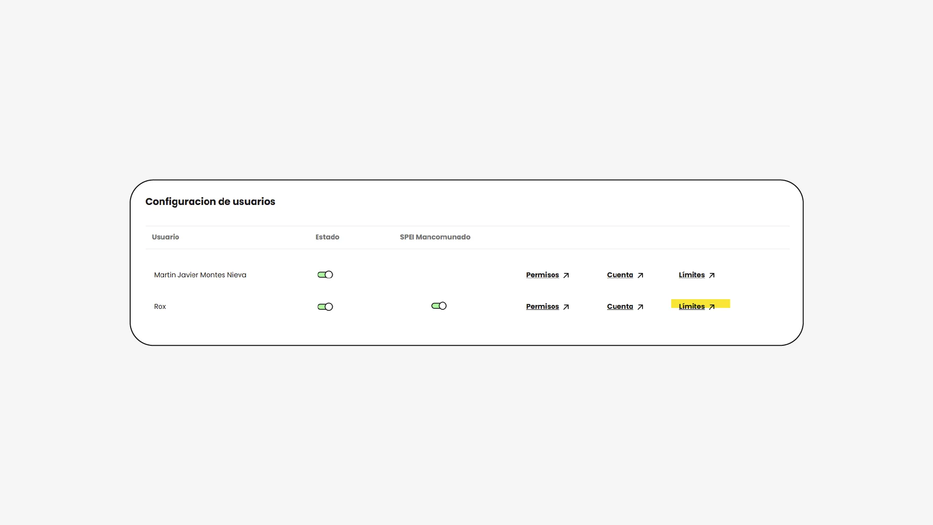 - Elige al usuario que tendrá permiso de pagar impuestos y haz clic en Límites.