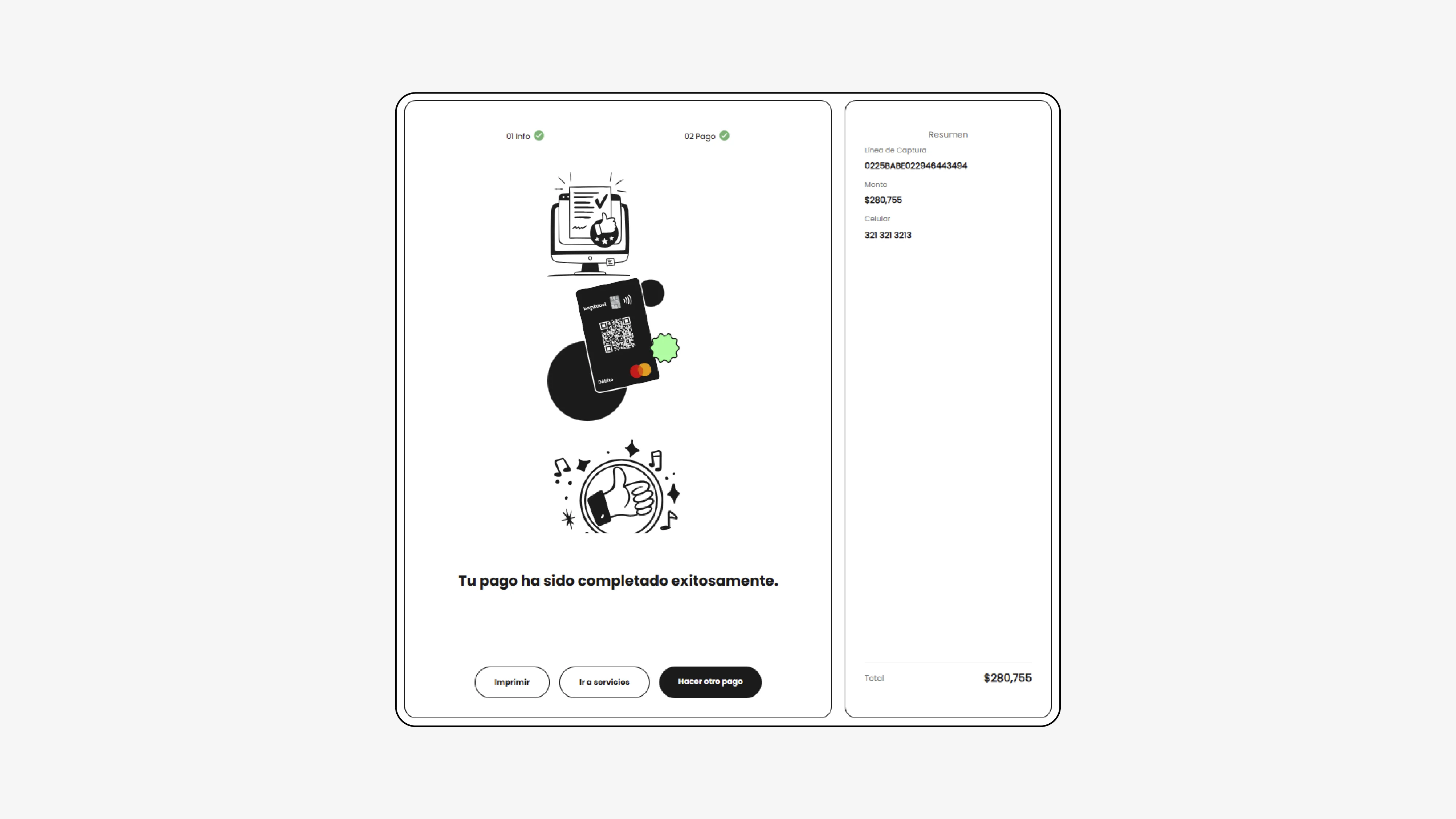 Así de fácil es pagar. Luego imprime tu comprobante, entra a Servicios o realiza otro pago.